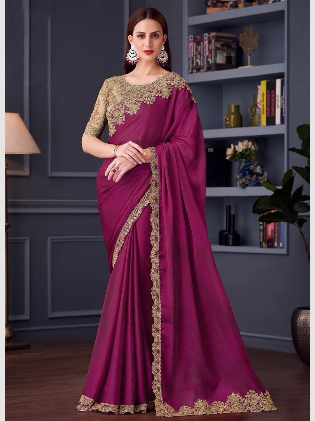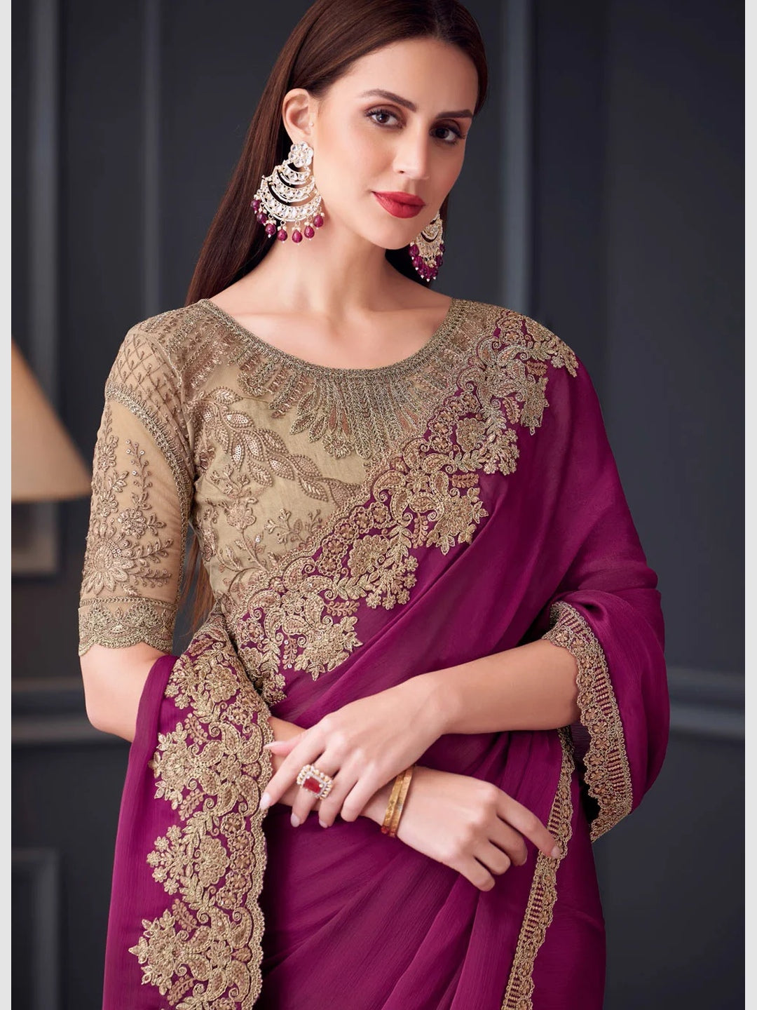 1. Fabric: Chiffon Saree; Silk Blouse Embroidery