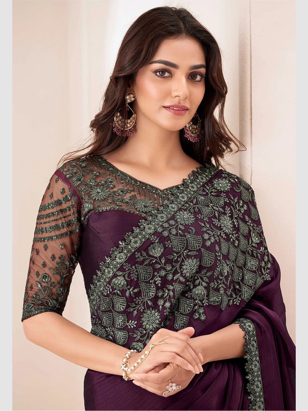 1. Fabric: Chiffon Saree; Silk Blouse Embroidery