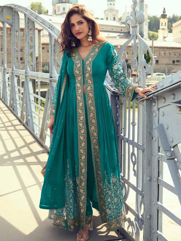 Anarkali Suits: Fitted at the bodice with a flowing flare, ideal for weddings, receptions, and formal evening events. Best for creating gracefol vertical elegance.
