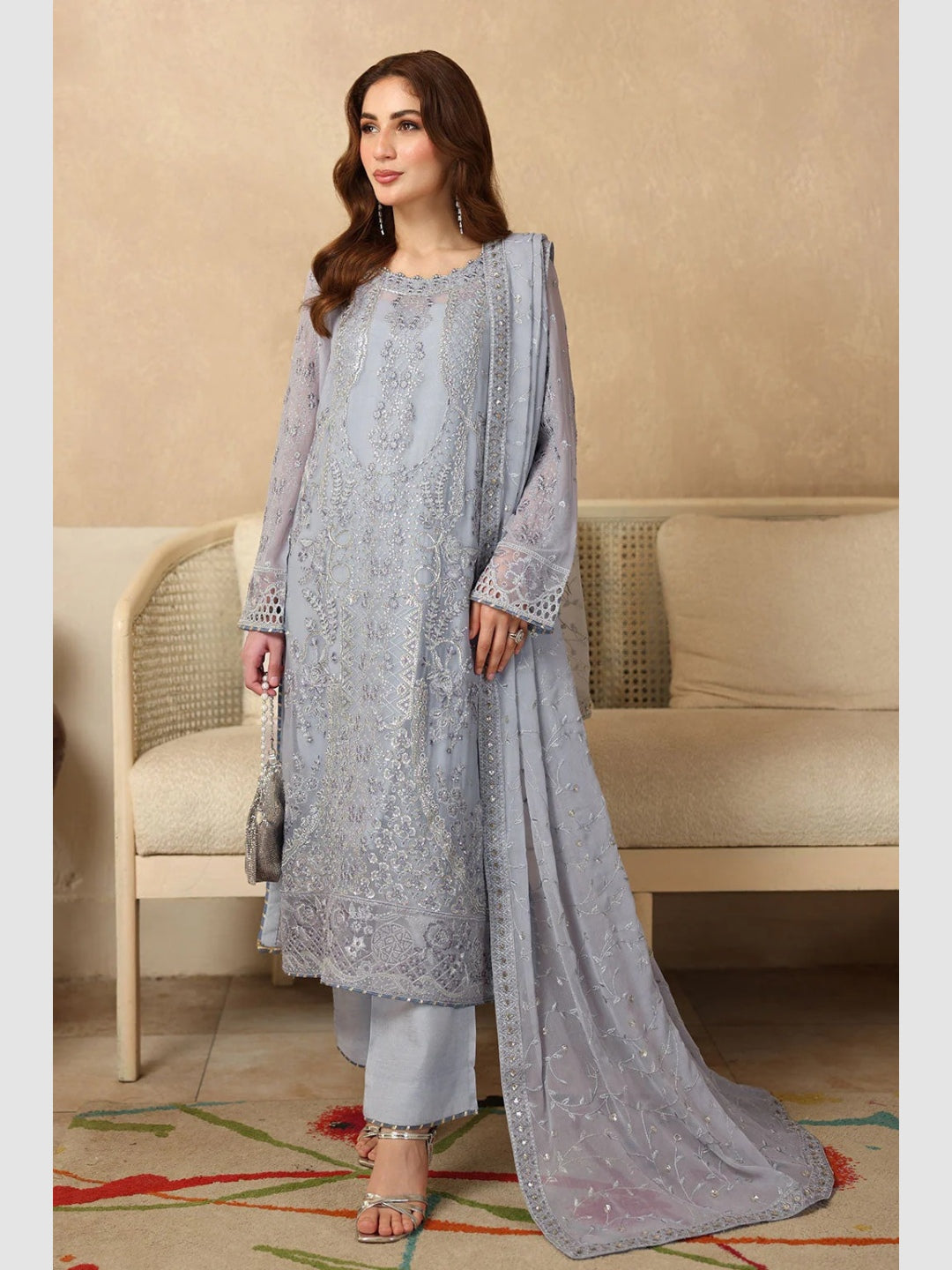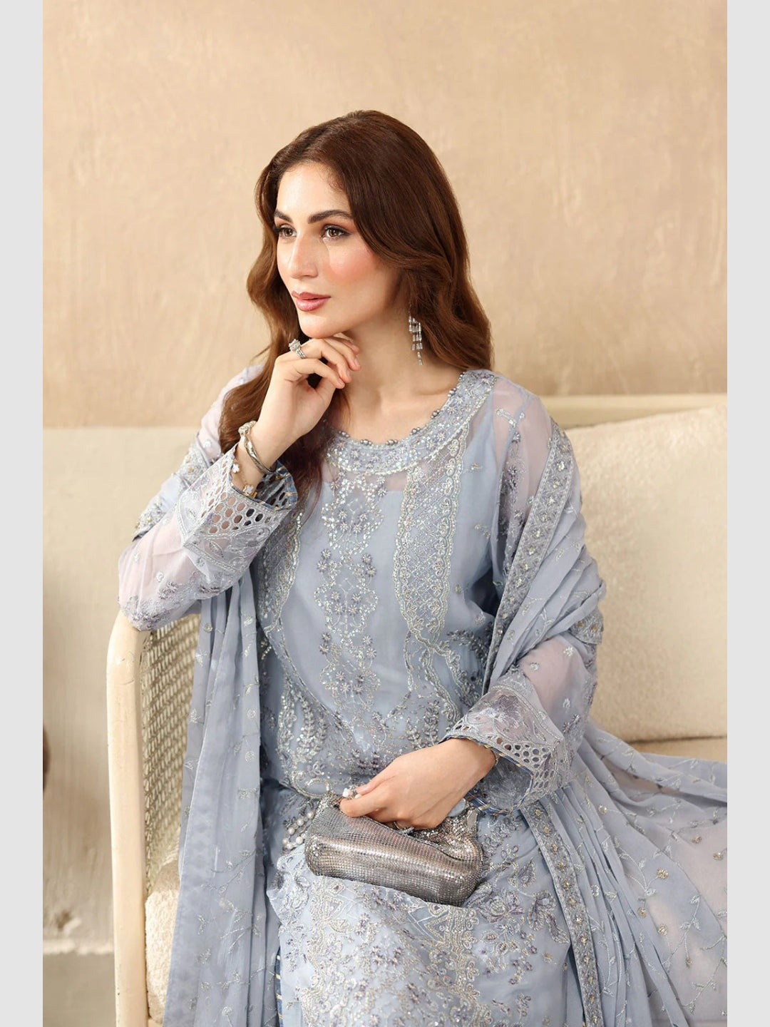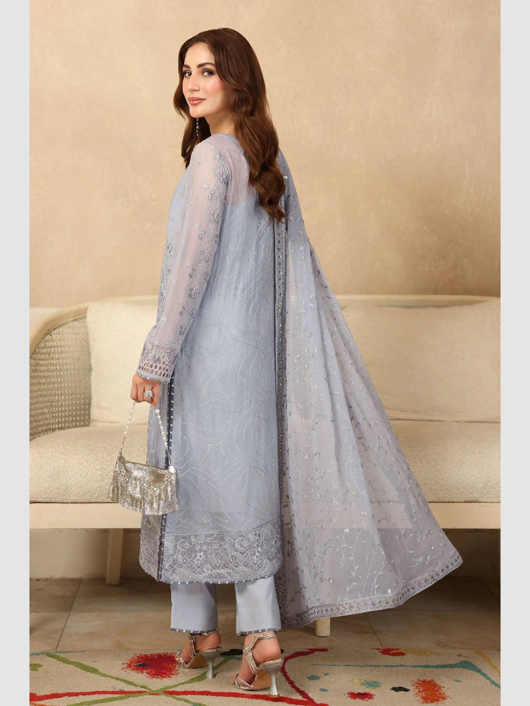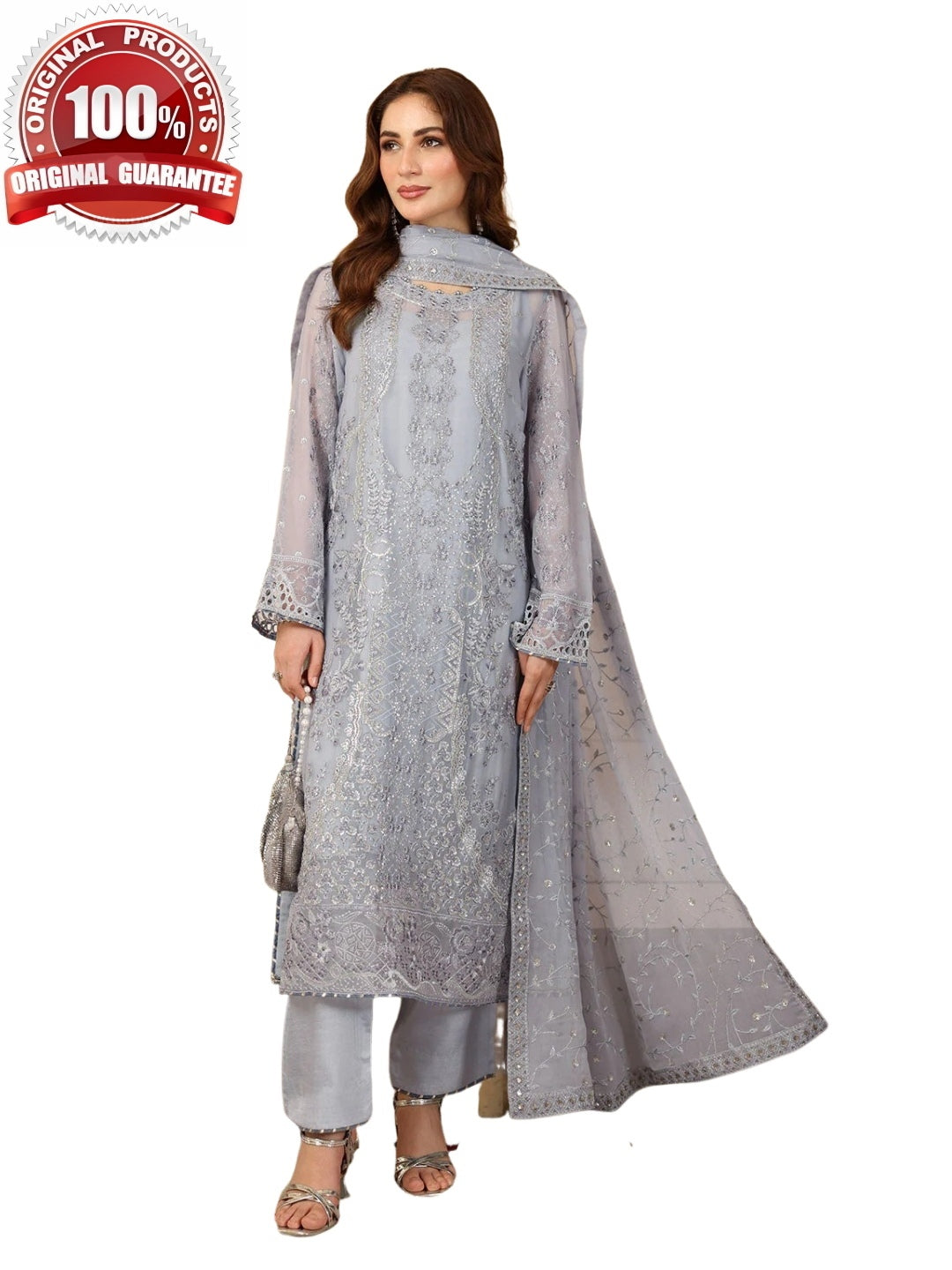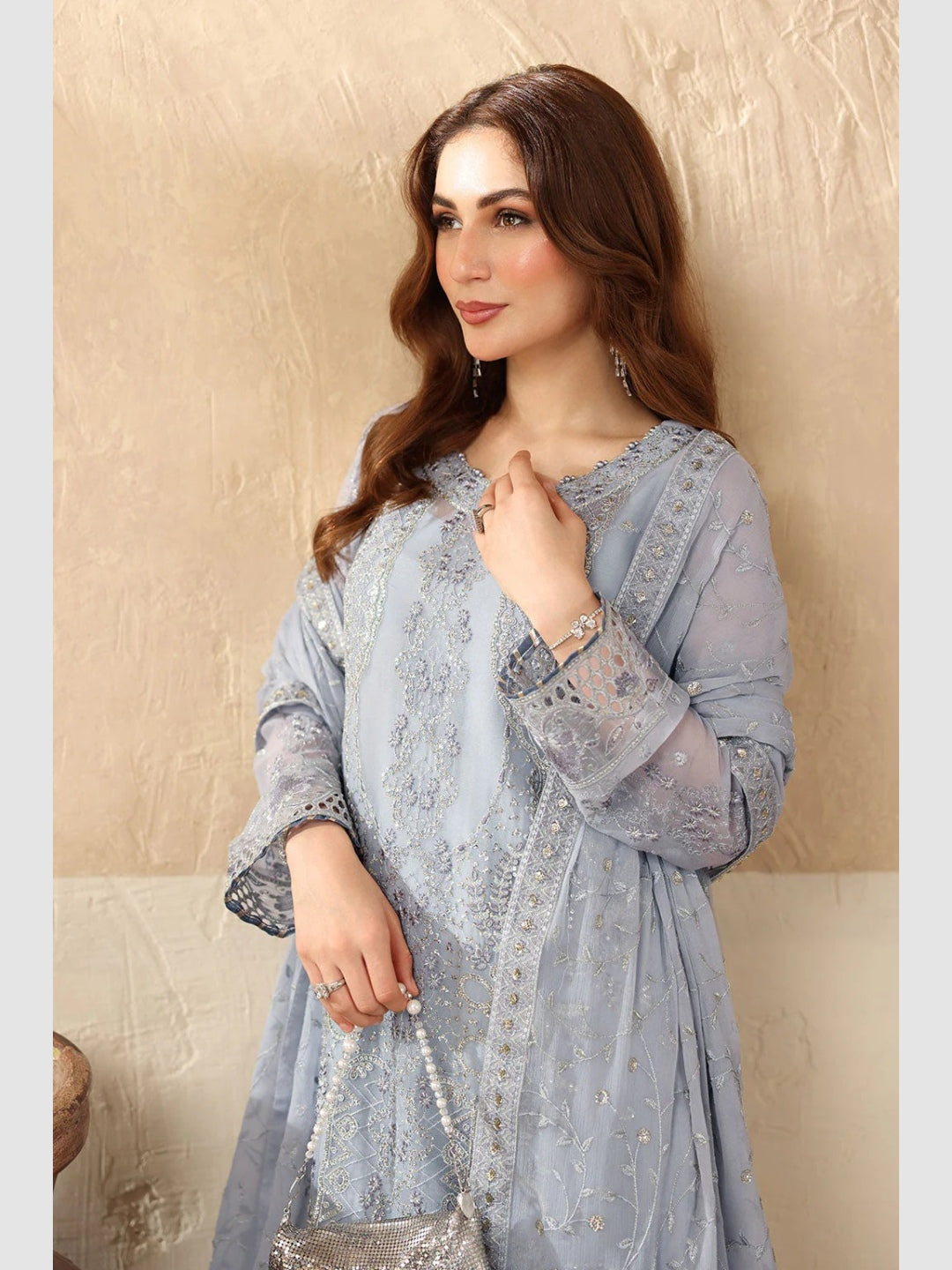 1. Top: Embroidered Premium Chiffon with Sequence