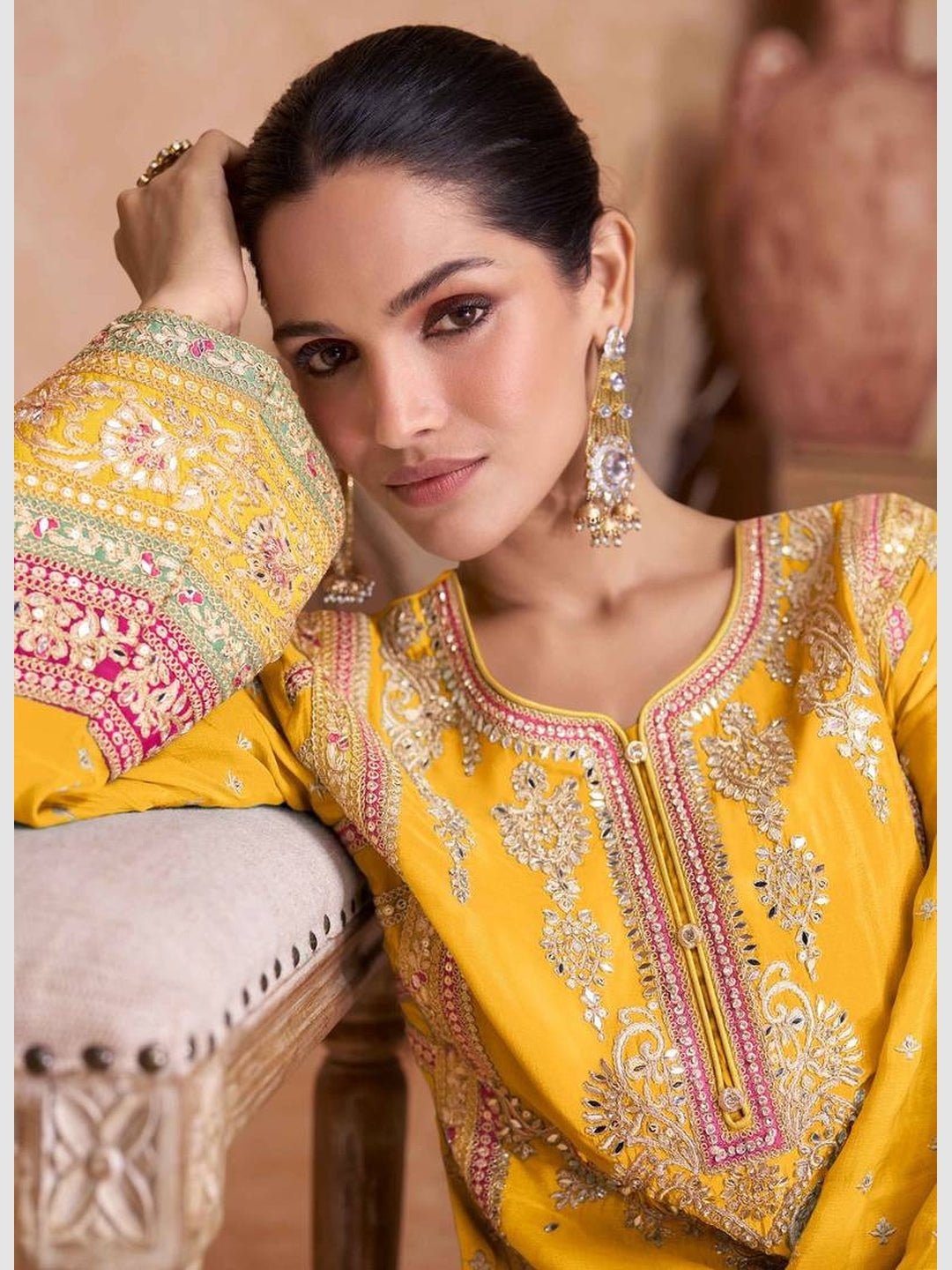 Chinon Silk Embroidery Salwar Kameez