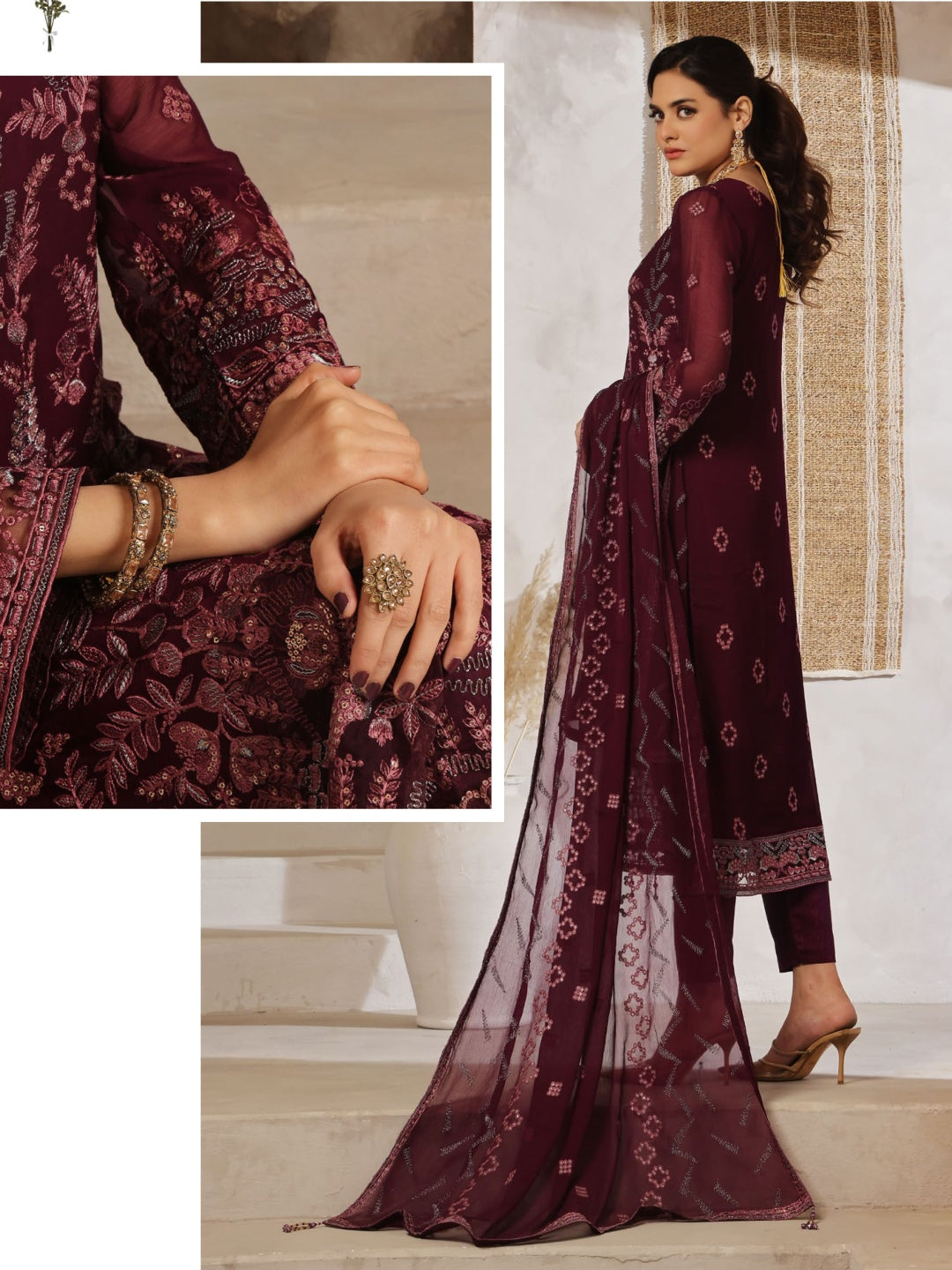 1. Top: Embroidered Premium Chiffon