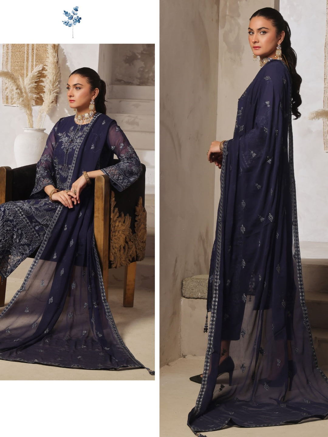 1. Top: Embroidered Premium Chiffon