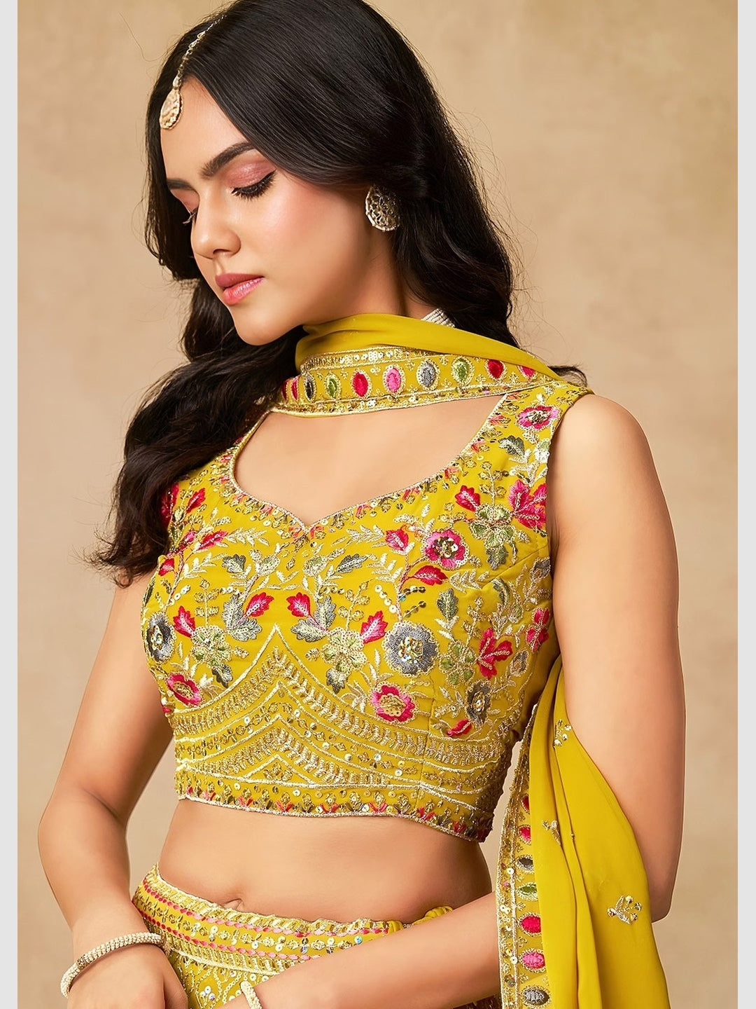 1. Blouse: Georgette Embroidery - Thread & Sequins Work