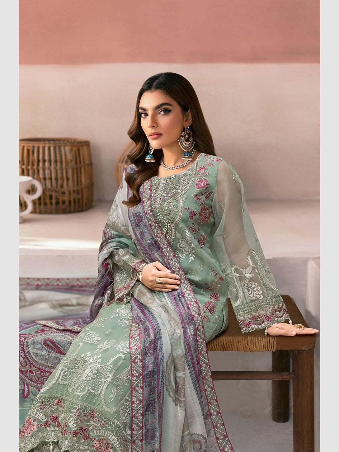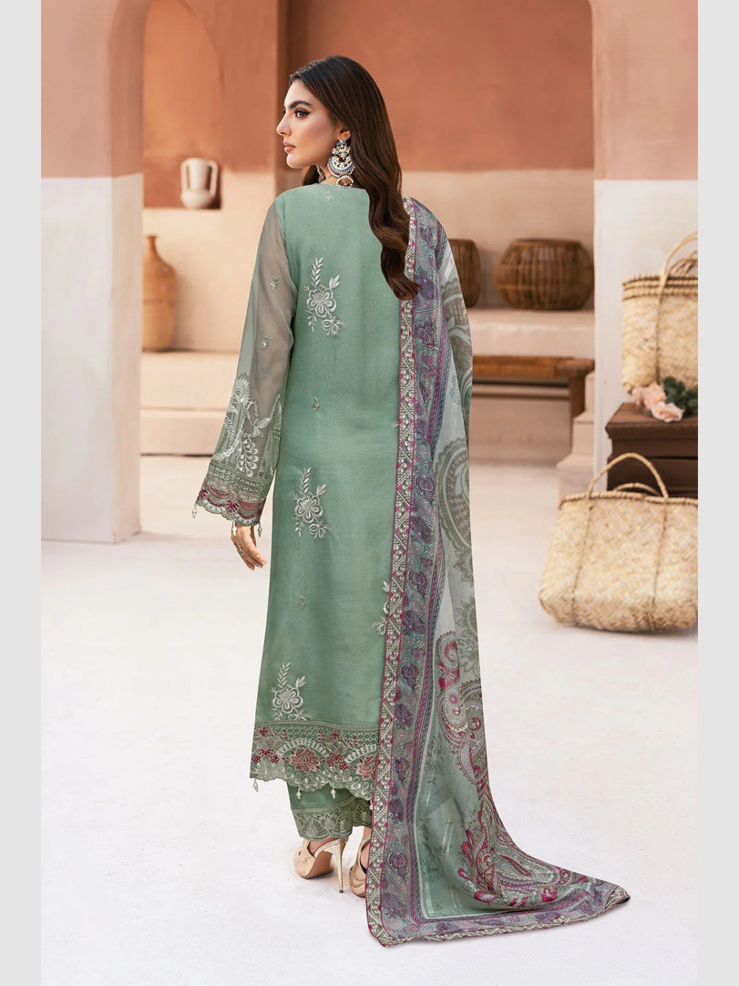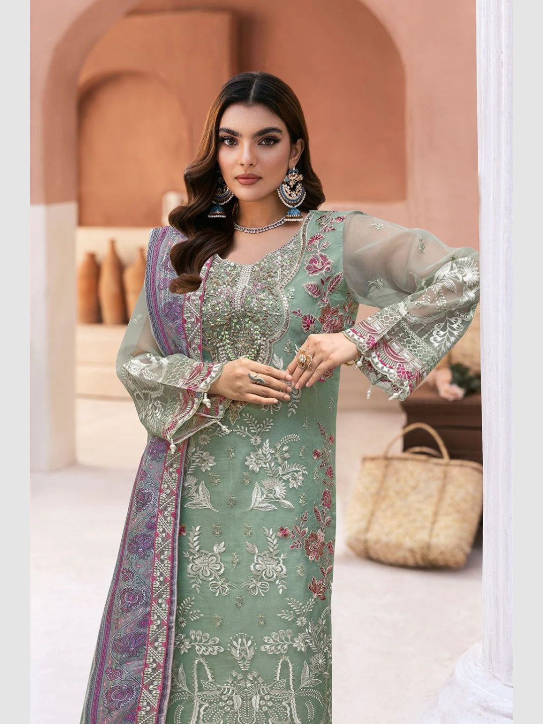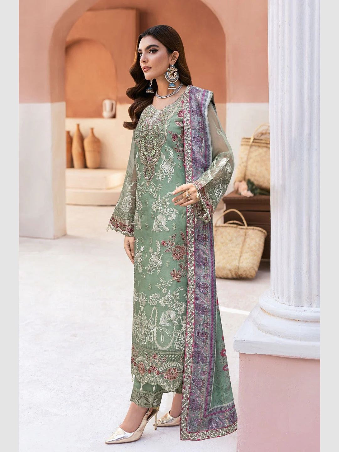 1. Top: Premium Organza Embroidered with Sequences