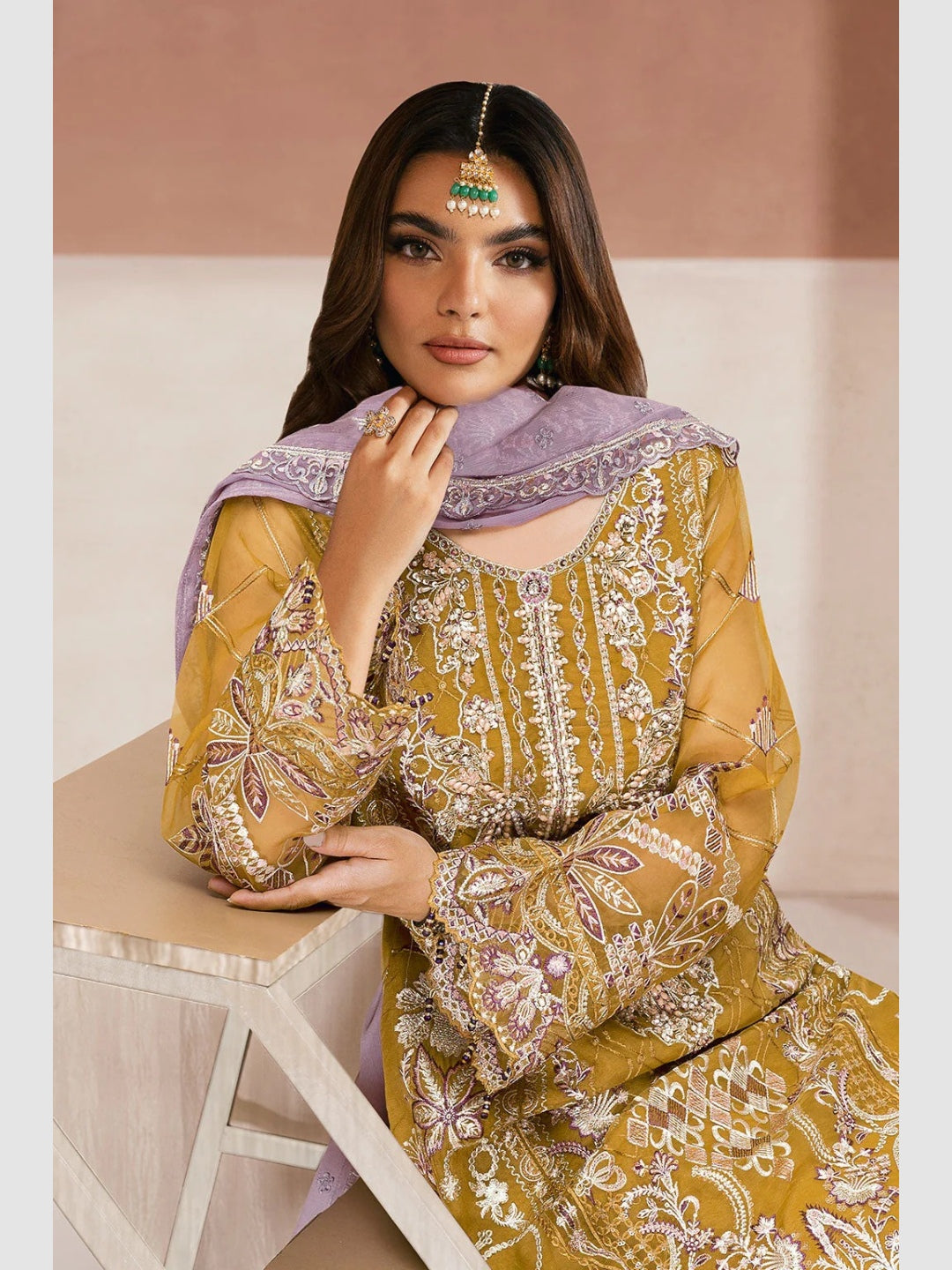 1. Top: Premium Organza Embroidered with Sequences