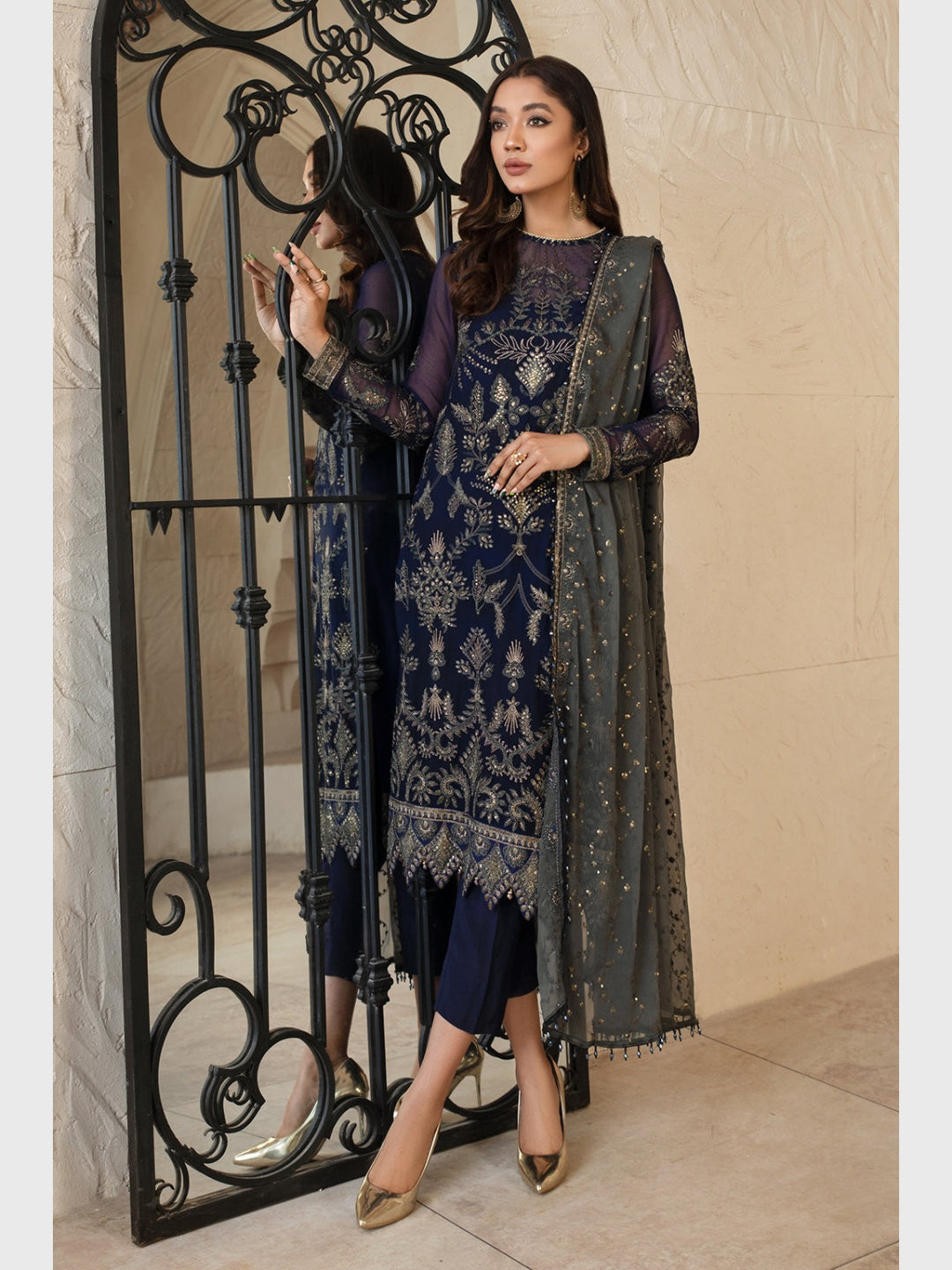 3. Dupatta: Sequins Embroidered Chiffon
